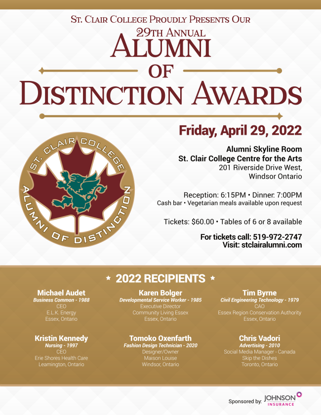 Community Living Essex County Executive Director, Karen Bolger, has been named as one of the 2022 recipients of St. Clair College’s Alumni of Distinction. Karen graduated in 1985 from the Developmental Service Worker program. She is being honoured in the category of Community Studies. This year’s Alumni of Distinction ceremony will take place on Friday, April 29th in the Alumni Skyline room at the St. Clair College Centre for the Arts in downtown Windsor. Visit www.stclairalumni.com for more information.