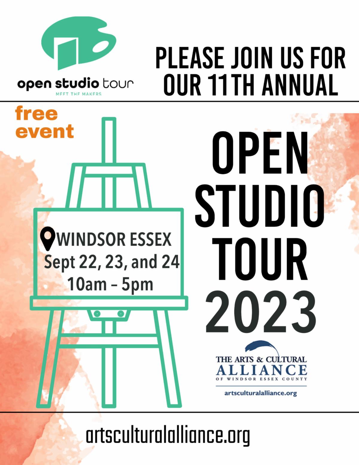 Explore the Annual Windsor-Essex Open Studio Tour from September 22nd - 24th. This FREE three-day event lets you step into local artists' studios and witness their creative processes. It aligns with Ontario Culture Days and offers a glimpse into the vibrant art scene of Windsor-Essex. Don't miss this unique opportunity to engage with over 20 local artists and experience their work firsthand. Click the link below for more information.