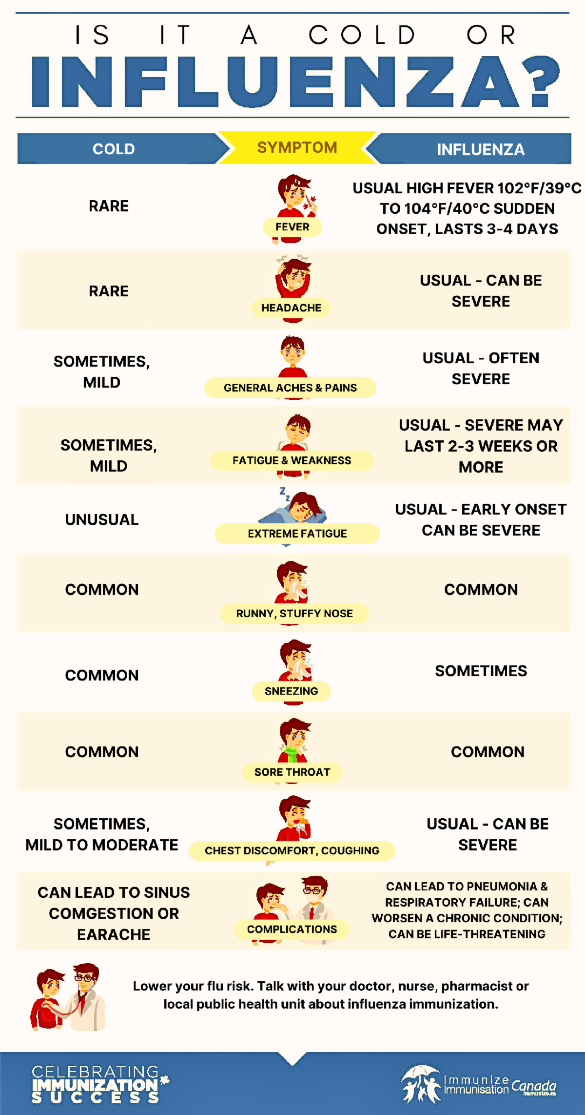 Flu season has arrived! Consider getting this year's flu shot to maintain your health and protect others. It is recommended for individuals such as support staff, caregivers, students, and volunteers. Keep in mind that flu symptoms are similar to cold and COVID-19 symptoms, but there are differences. The chart above provides a quick reference.
