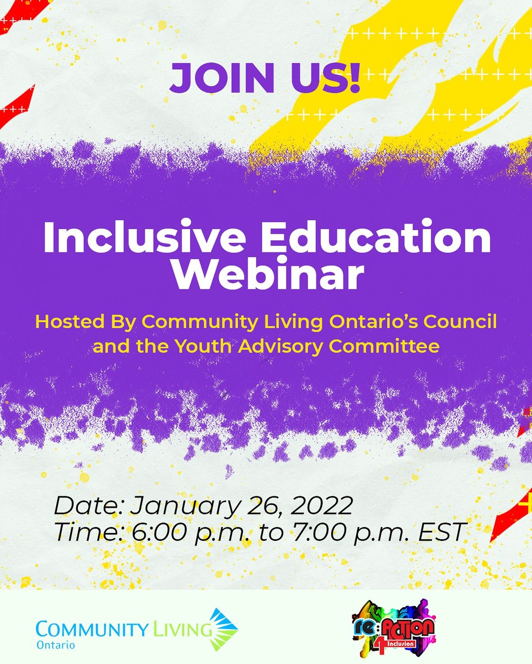 Are you interested in knowing more about inclusive education? This free webinar hosted by Community Living Ontario's Council and the Youth Advisory Committee is for you!
