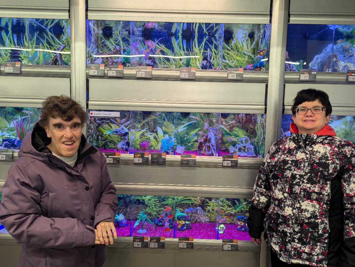 After a nice walk around the mall last week, Andrea and Laurie stopped at PetSmart to check out the animals. They enjoyed watching the colorful fish, the birds, and the playful hamsters. It was a fun and relaxing time, and they really enjoyed watching the animals interact. The day left them both feeling happy and refreshed! | |