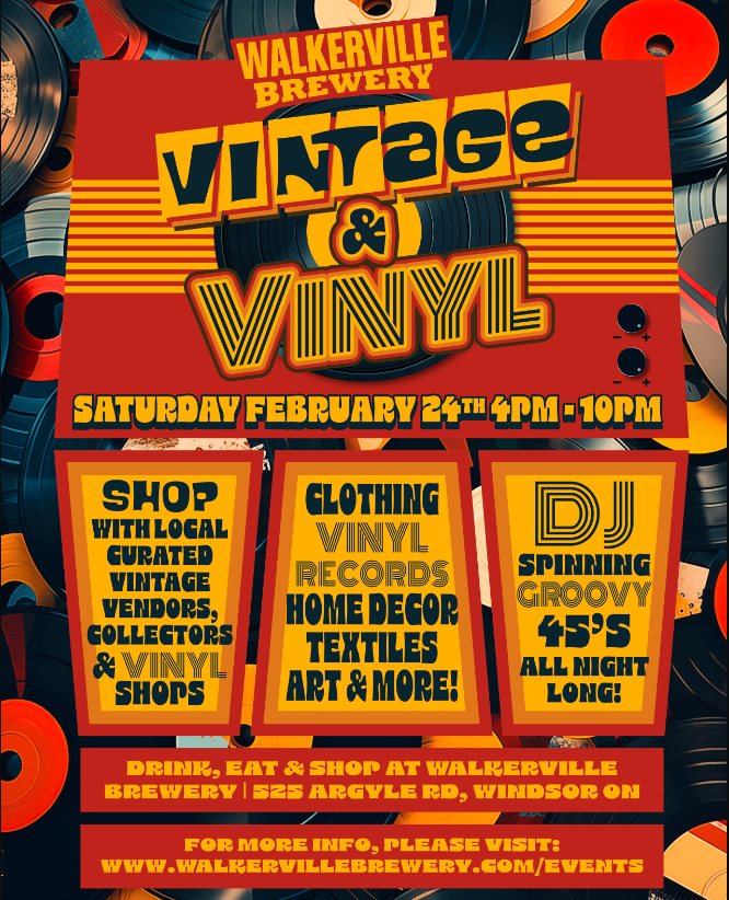 From 4pm-10pm on Saturday, February 24 head to Walkerville Brewery at 525 Argyle Rd to browse local curated vendors offering vintage clothing, vinyl records, and retro collectibles.
