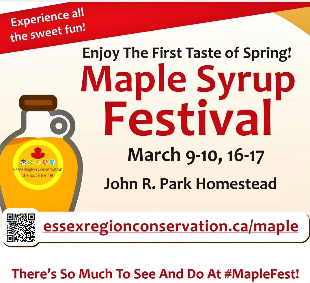 The sweetest time of year is almost here! You won't want to miss the demonstrations, family-friendly activities, contests, sweet samples, and so much more! Festival tickets are available online and in-person over the two-weekend celebration. To find out more or buy tickets online visit: essexregionconservation.ca/maple | |