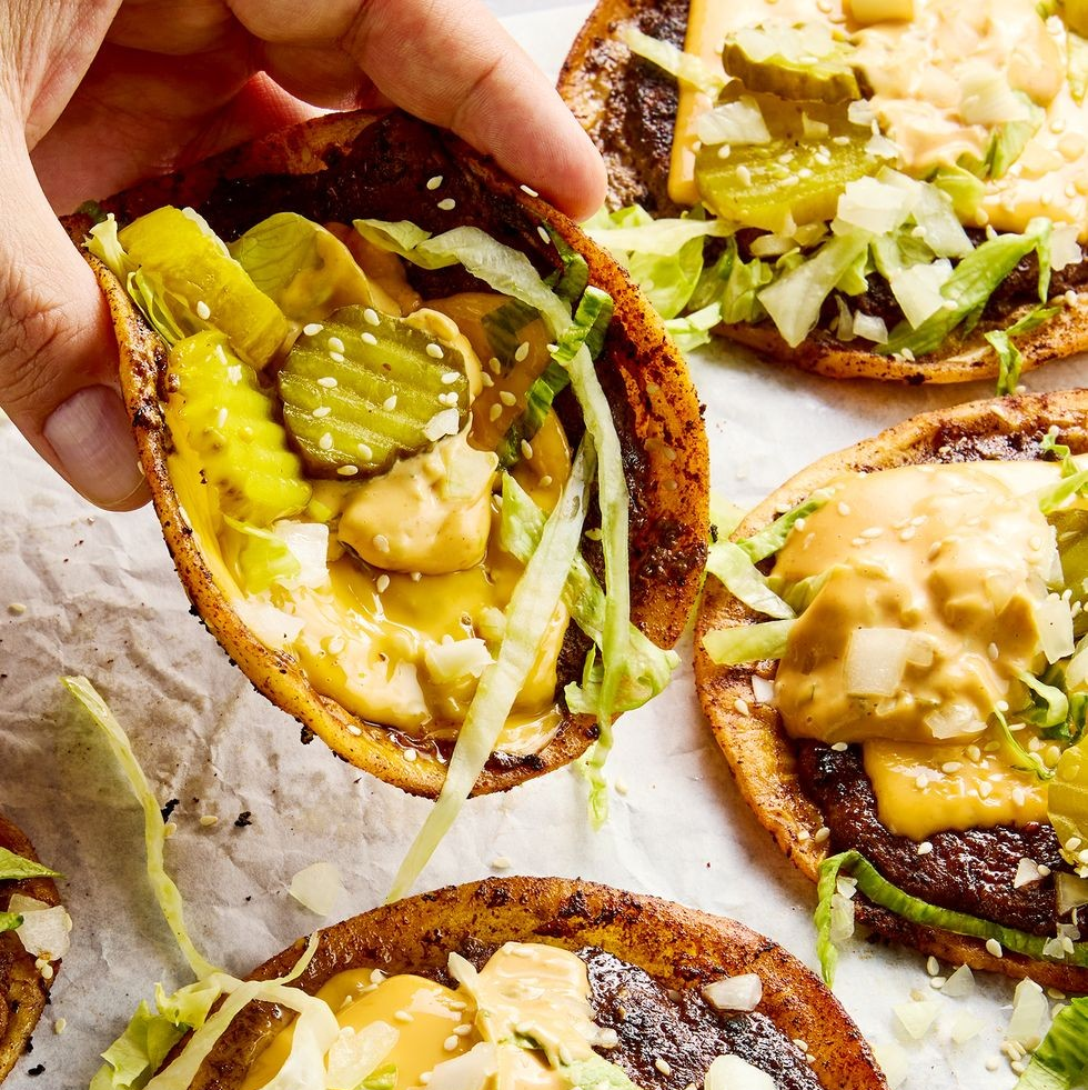 You’ll never have to choose between burger night or taco night with these fully loaded smash burger tacos. It’s the ultimate comfort food hybrid with a crispy, juicy, thin beef patty, melty American cheese, and all the classic burger fixings loaded onto a toasted flour tortilla. | |