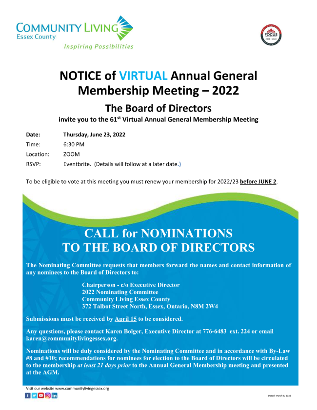 The above flyer contains the AGM invitation and the Call for Nominations for the Board of Directors.