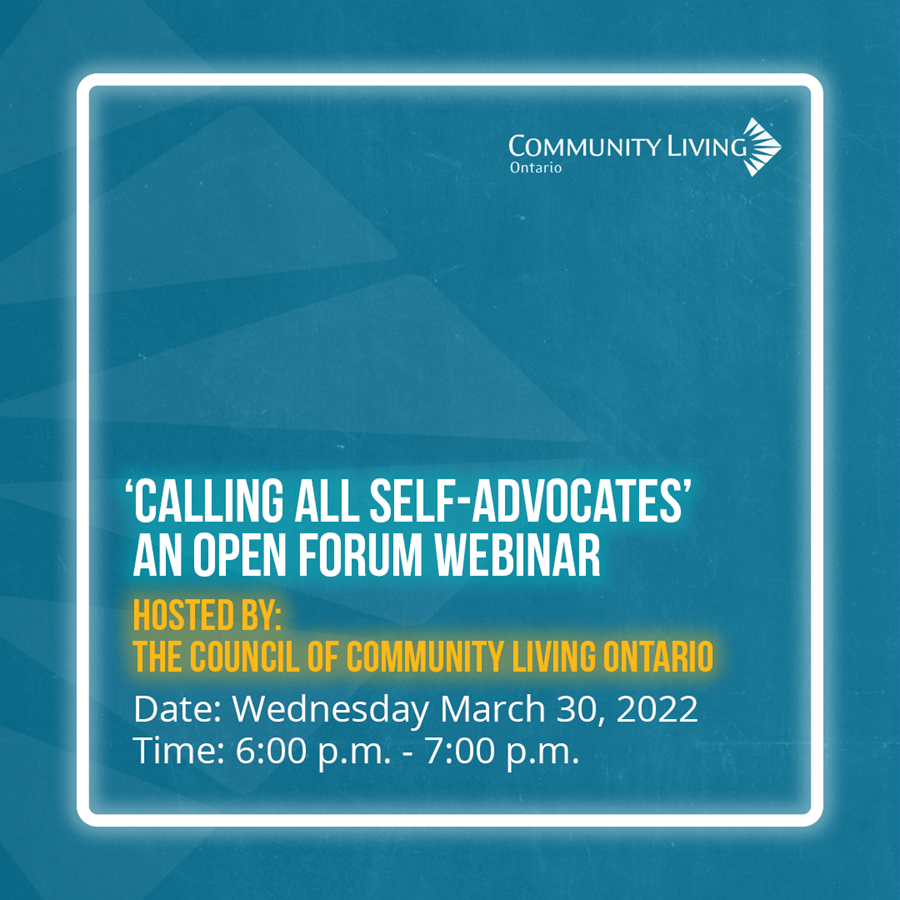 Are you passionate about advocacy and making a difference in the lives of people who have a disability? Do you have a concern or question about an issue that affects your life as a person who has a disability? If you answered "yes", then Community Living Ontario invites you to an upcoming webinar. Join in this safe space for the opportunity to share and discuss important issues like poverty, ODSP, housing, congregate living, and health care.