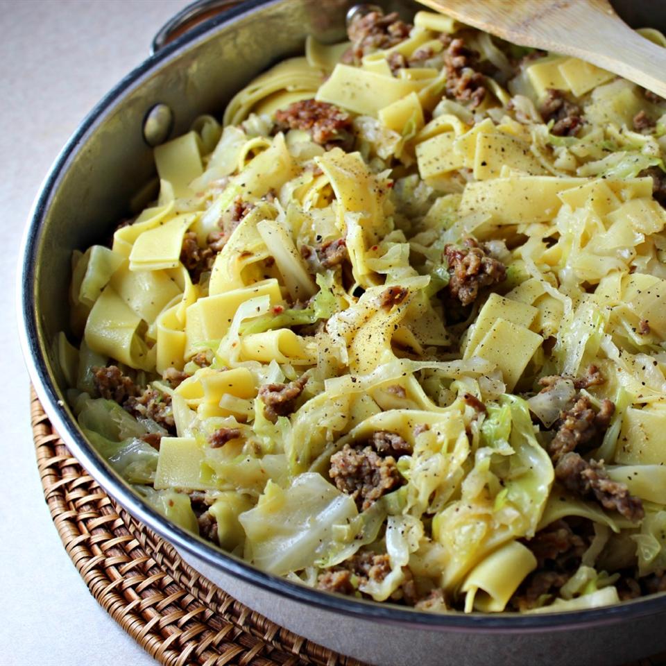 Simple and tasty, this Polish dish combines bacon, fried cabbage and egg noodles. It only takes half an hour to prepare.