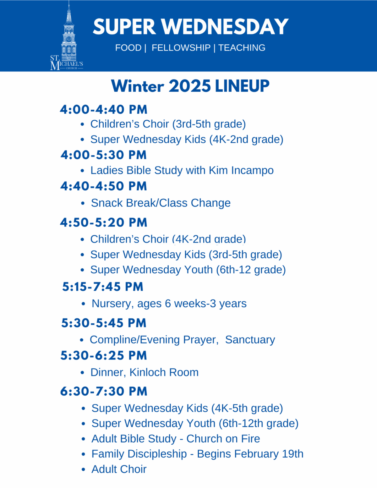 Bill Hyer's Class, 10 am in the Kinloch Room (1st floor, Belser Bldg).