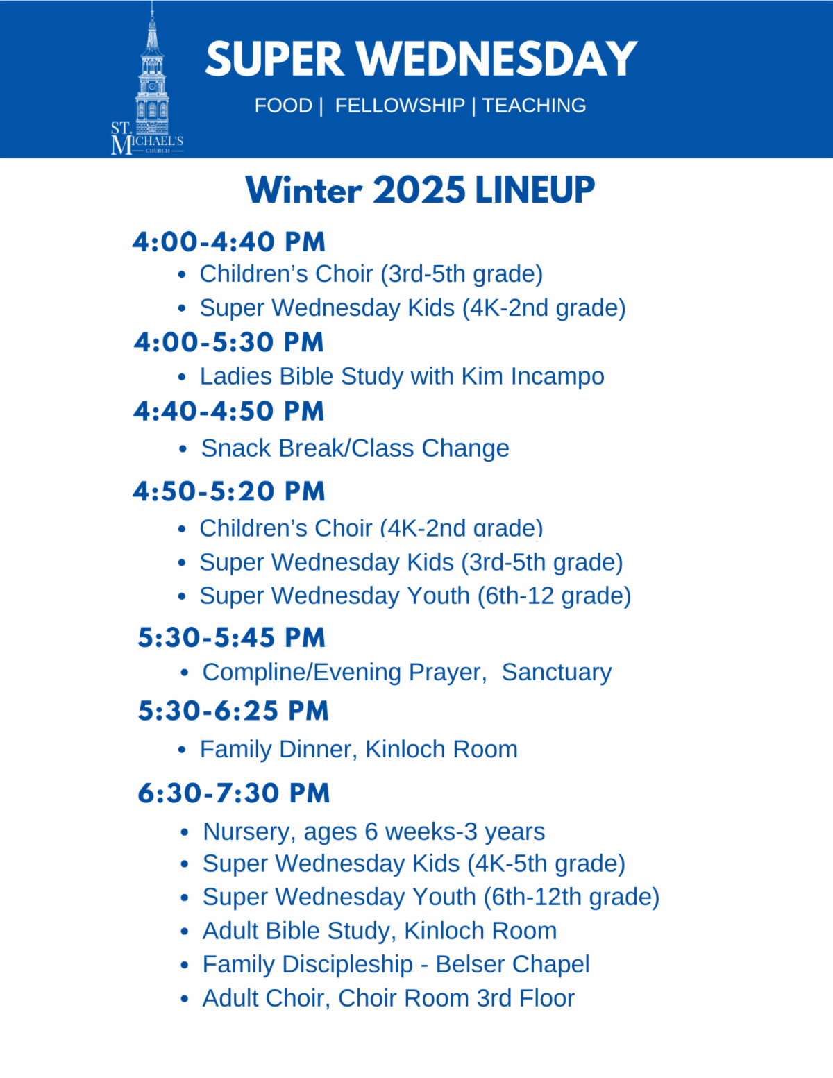 St. Michael’s Alley door or in the box in the narthex beginning February 23rd.
