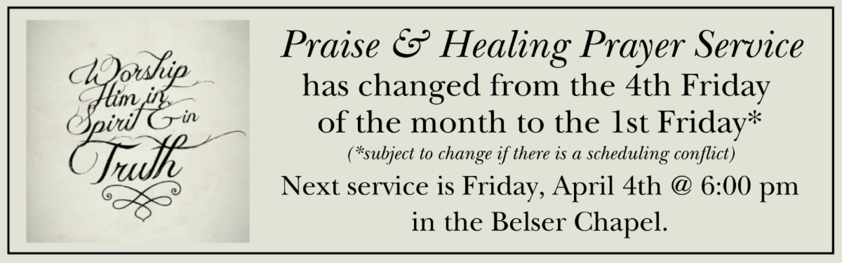 - Praise & Healing Prayer Service, Friday April 4th, 6:30 pm