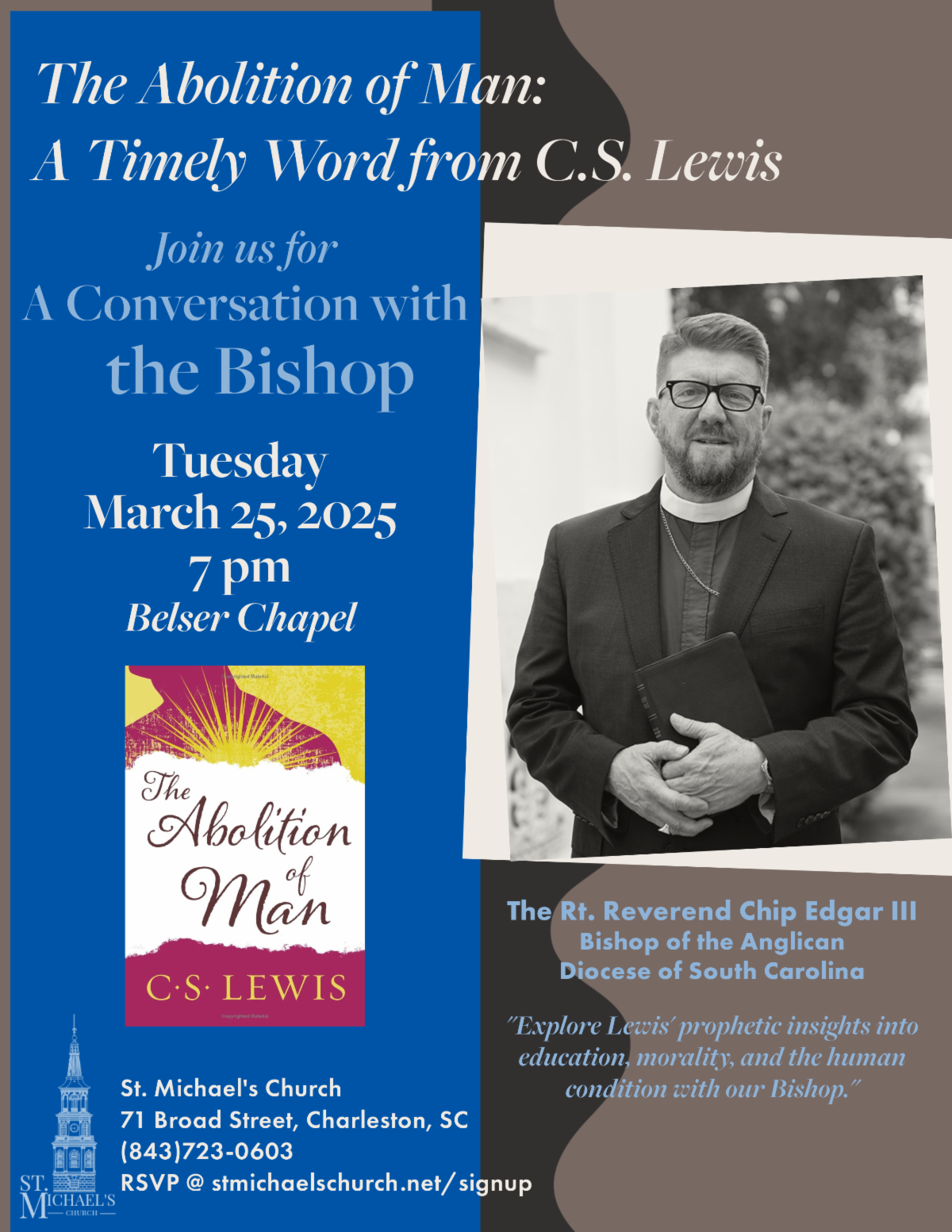 - An Evening with the Bishop, Tuesday, March 25th, 7 pm
