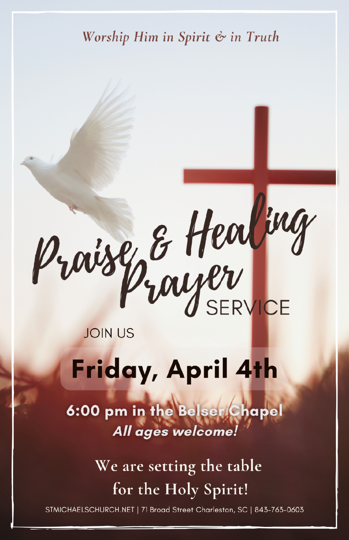 - Praise & Healing Prayer Service, Friday April 4th, 6:30 pm