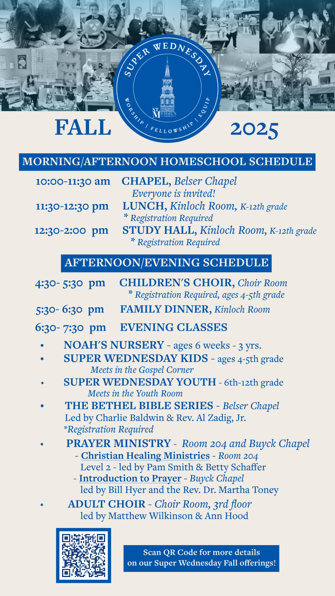 We're excited to share our Fall 2025 Super Wednesday Lineup! We have a new Homeschool addition to our Super Wednesday schedule and we have some new evening classes as well. Please note that the Homeschool classes require a registration and so do some of the afternoon/evening classes. For more information about the Super Wednesday Schedule click the button below: