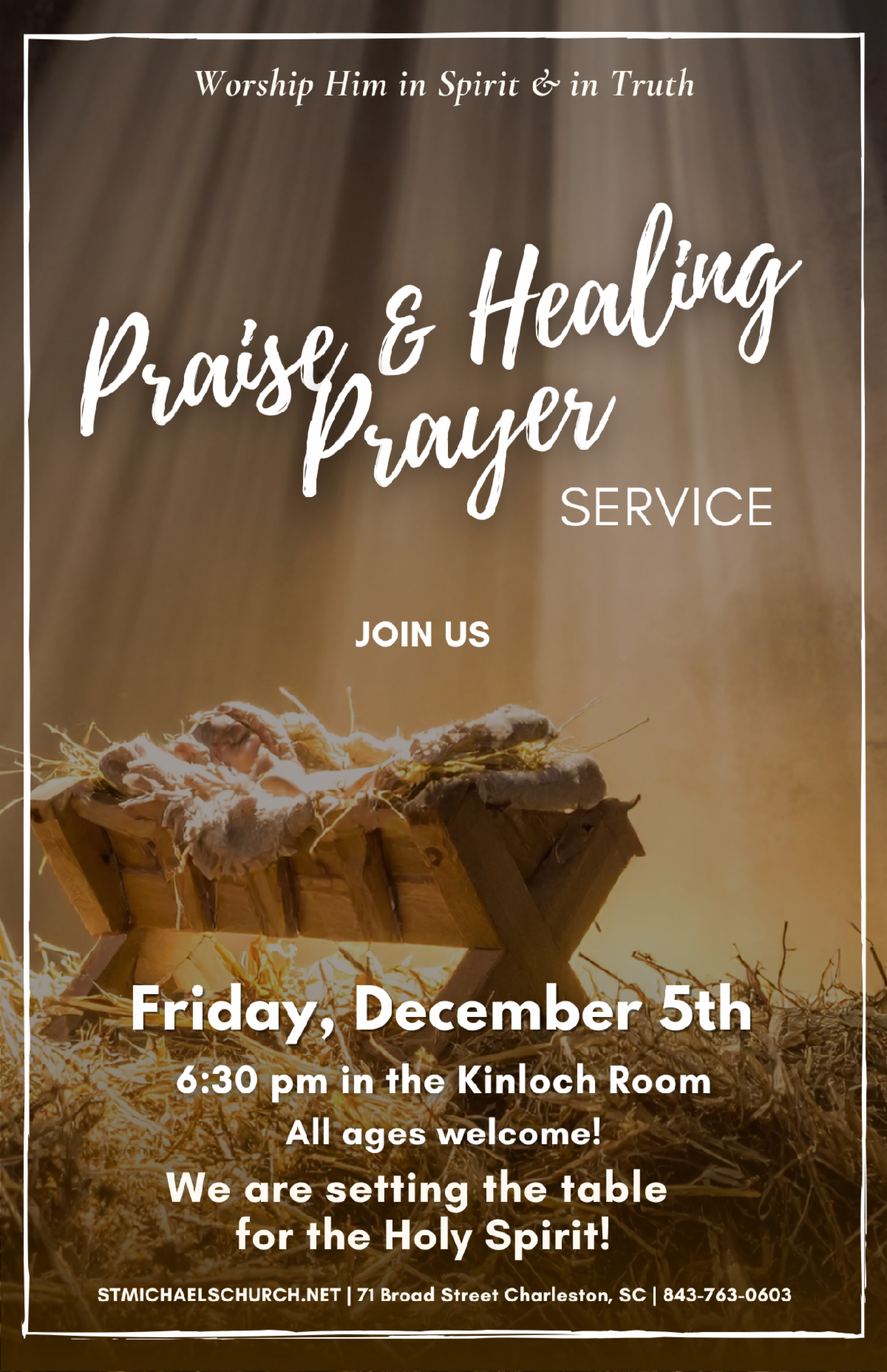 - Praise & Healing Prayer Service, Friday, December 5th, 6:30 pm