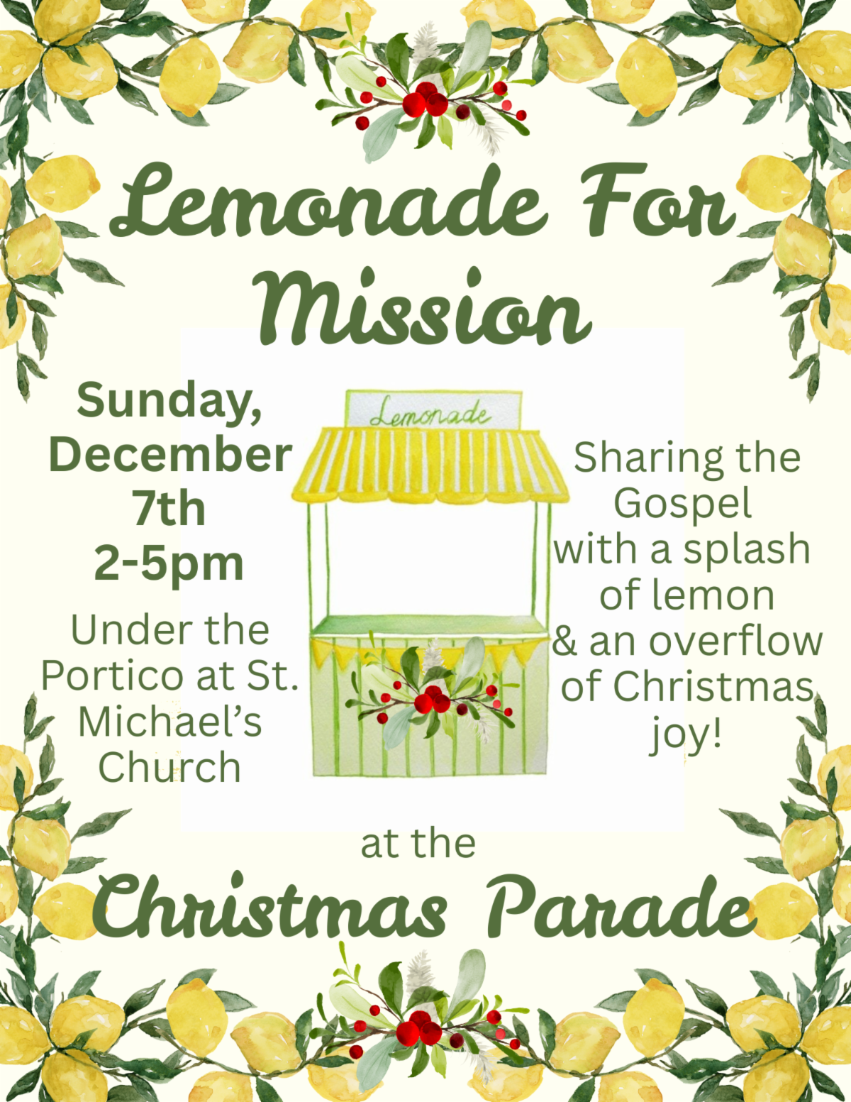 - Lemonade for Mission, Sunday, Dec. 7th, 2-5 pm