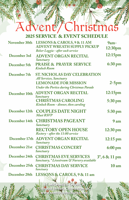 The 2025 Advent and Christmas Full Schedule of Events!