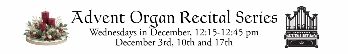 - Advent Organ Recital Series, Dec. 3rd, 10th, 17th, 12:15-12:45 pm
