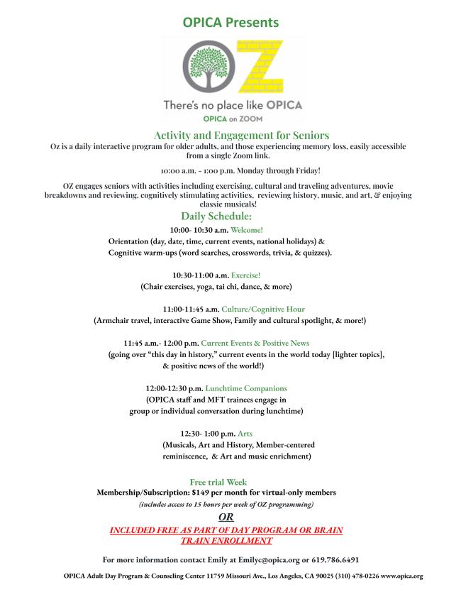 OPICA Adult Day Care and Counseling Center is proud to introduce "OPICAcares", a new program intended to provide support for individuals living at home alone or individuals in under-resourced communities that are experiencing memory loss.