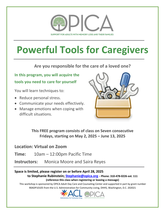 Space is limited, please register on or before April 28, 2025 to Stephanie Rubinstein; Stephanie@opica.org – Phone: 310-478-0226 ext. 111