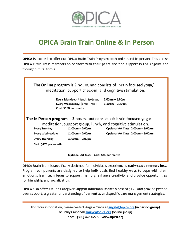 OPICA’s Brain Train program is designed specifically to cater to individuals dealing with early-stage memory loss.