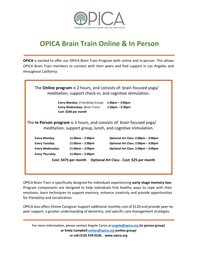 OPICA Adult Day Care and Counseling Center is proud to introduce "OPICAcares", a new program intended to provide support for individuals living at home alone or individuals in under-resourced communities that are experiencing memory loss.