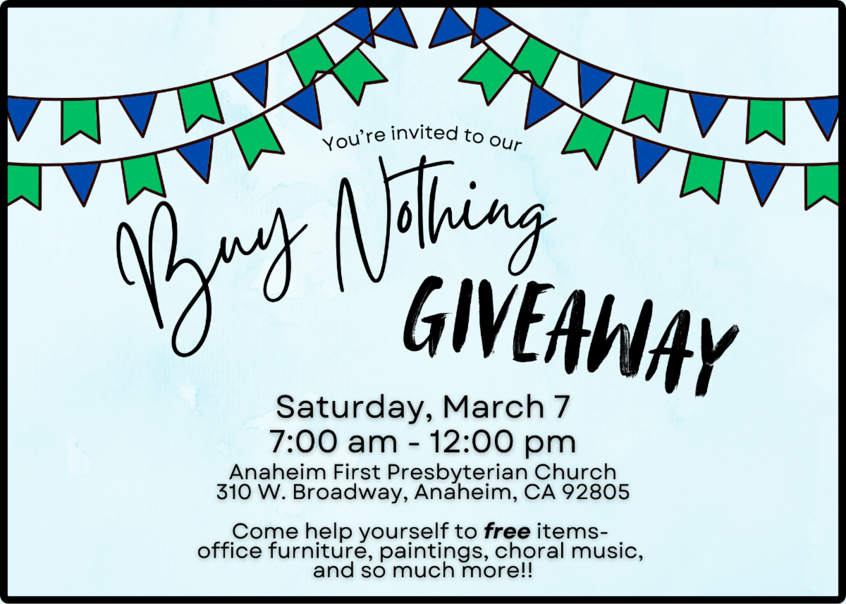 please contact the church office: offices@anaheimfirstpres.org or 714.535.2176.