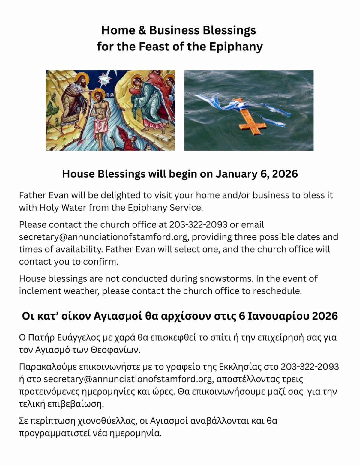 9:00 am Orthros & Divine Liturgy & Great Blessing of the Waters.