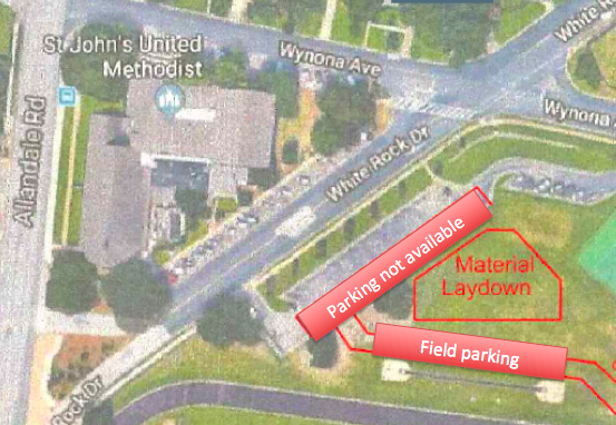 For future Sundays during construction, Lamar Middle School has graciously offered to allow us to park on the field. Further information to come.