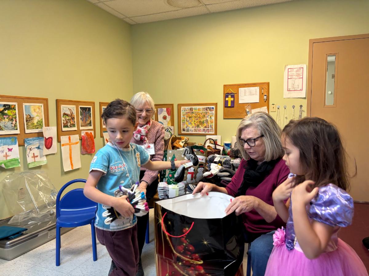 The children of Godly Play (St John’s Sunday School), their families and leaders collected new socks, mittens, hats, and gloves for the participants of The Well - Belong Ottawa and placed them under a Mitten Tree at the Christmas Market. The Well is a day program for those in need - a ministry of our Diocese of Ottawa - located in the lower level of St John's Church. The children made the tree decorations to go with their gifts. It was a fun program for the children to learn about stewardship. Thanks to Shauna-marie Young, Executive Director of Belong Ottawa, for coming to visit us and bringing all the oranges which the children loved. Mary Ann Varley