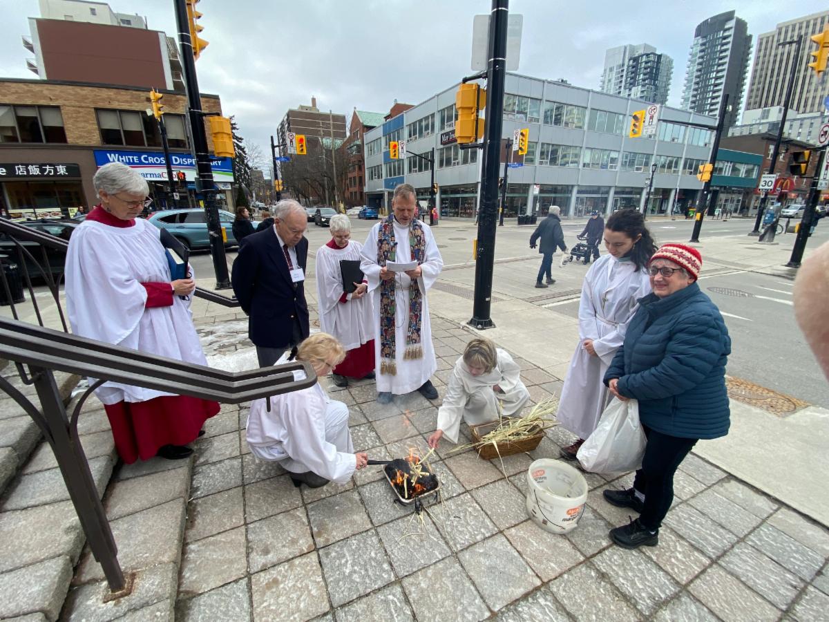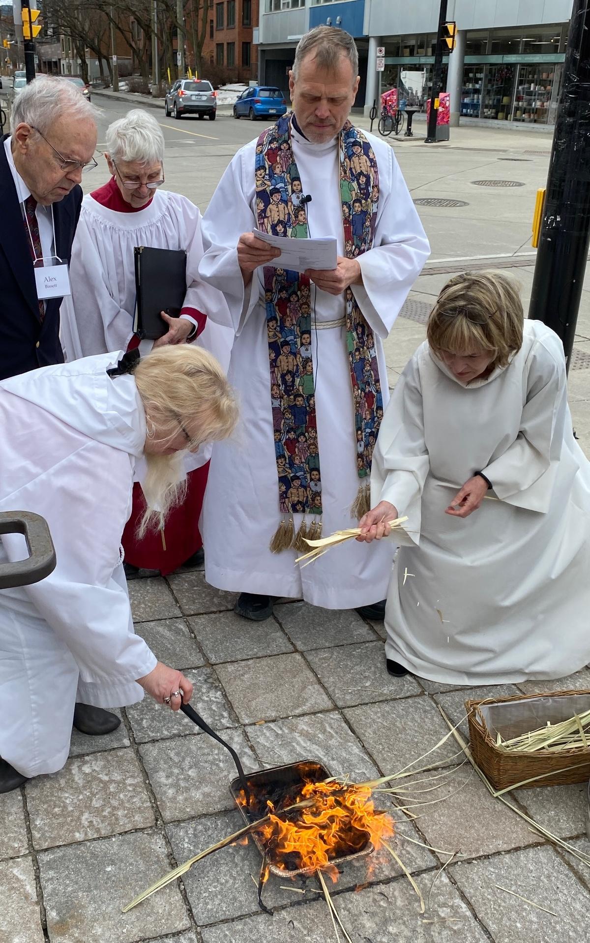 Burning the palms for Ash Wednesday.