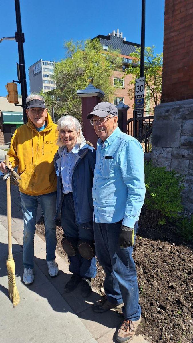 Our gardeners are back! Garth, Gay and Ed are getting started on our Elgin Street oasis of beauty. Garden helpers invited! Send us a note if you would like to join us!