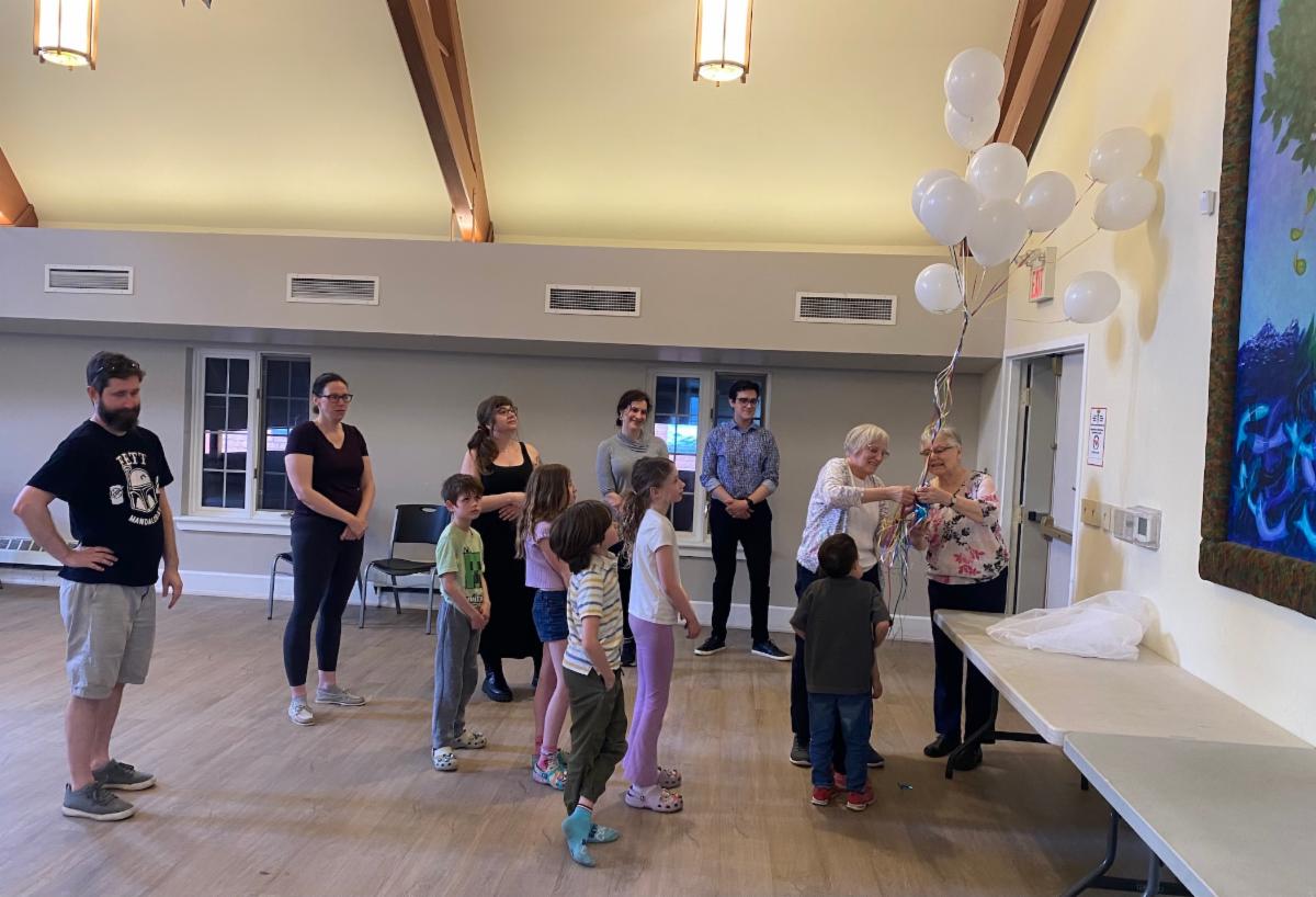 | | ABOVE: Worship leaders this past Sunday: Allen, Scout, Allen, Wendy & Gary | | ABOVE: Children's Ascension Day Service this past Sunday. Always very lively - even more so with helium balloons and the theme of "ascending"! | | |