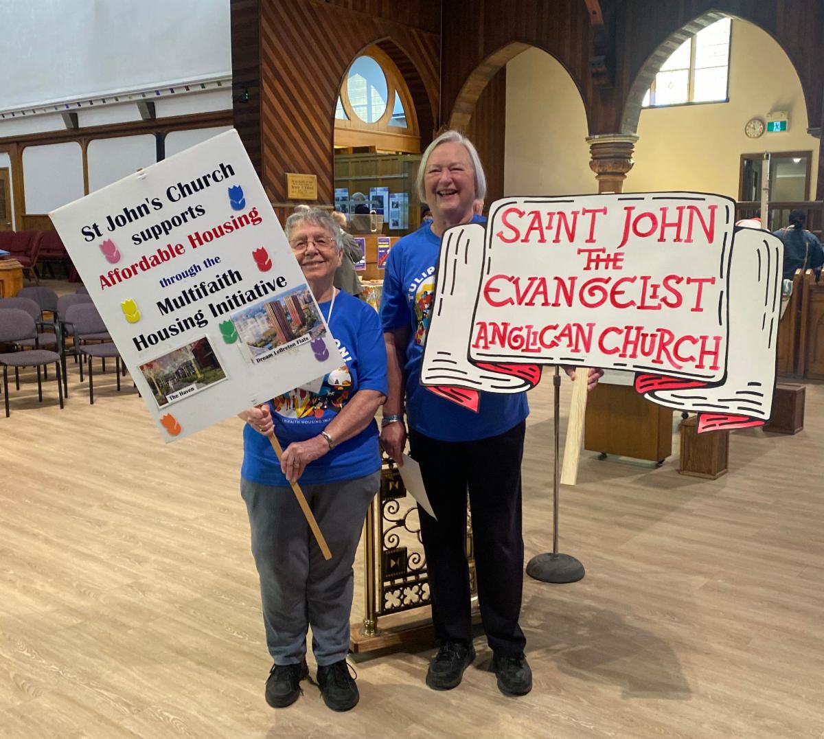 ABOVE: Mary Frances and Marilyn with our St John's signs.