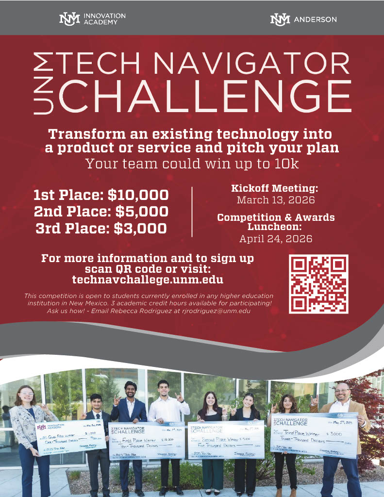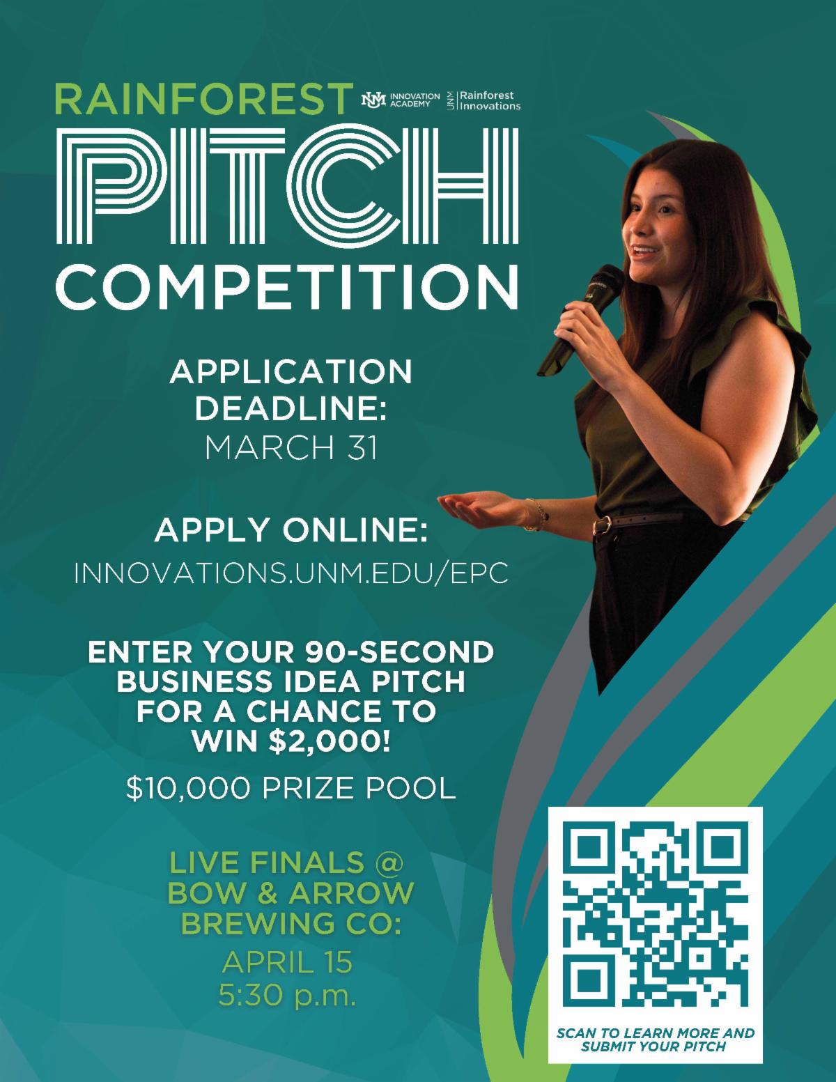 Submit a 90-second elevator pitch video (single take, no edits) for your business or idea. Applications due March 31. Finalists will be invited to pitch live at an evening reception on April 15, 2026 at 5:30 PM at Bow & Arrow Brewing in front of judges, entrepreneurs, and investors. The top winner chosen by audience vote will receive $2,000, with cash prizes awarded to all finalists.