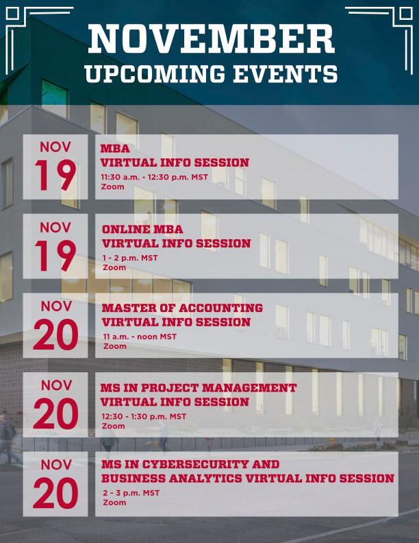A graduate degree helps you cultivate job-specific skills and differentiate yourself in the market! Learn more at our upcoming info sessions:
