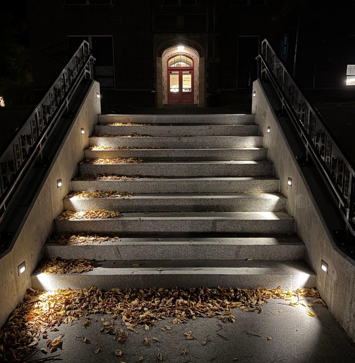 The railings are in, the lights are illuminating, and the history lives on through these stunning new stairs. Please come by to see them and use them!