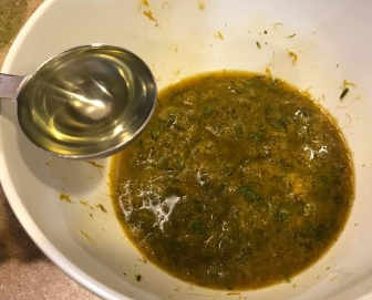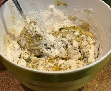 Transfer your dandelion mixture to a bowl to add the rest of the ingredients.