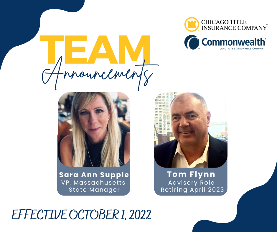 After 40 years in the title industry, I am announcing my retirement. I will be transitioning from my current role of Vice President and Massachusetts State Manager to an advisory role for the same operation, until officially retiring on April 30, 2023. I am looking forward to spending more time with the grandkids and more time on the golf course in retirement.
