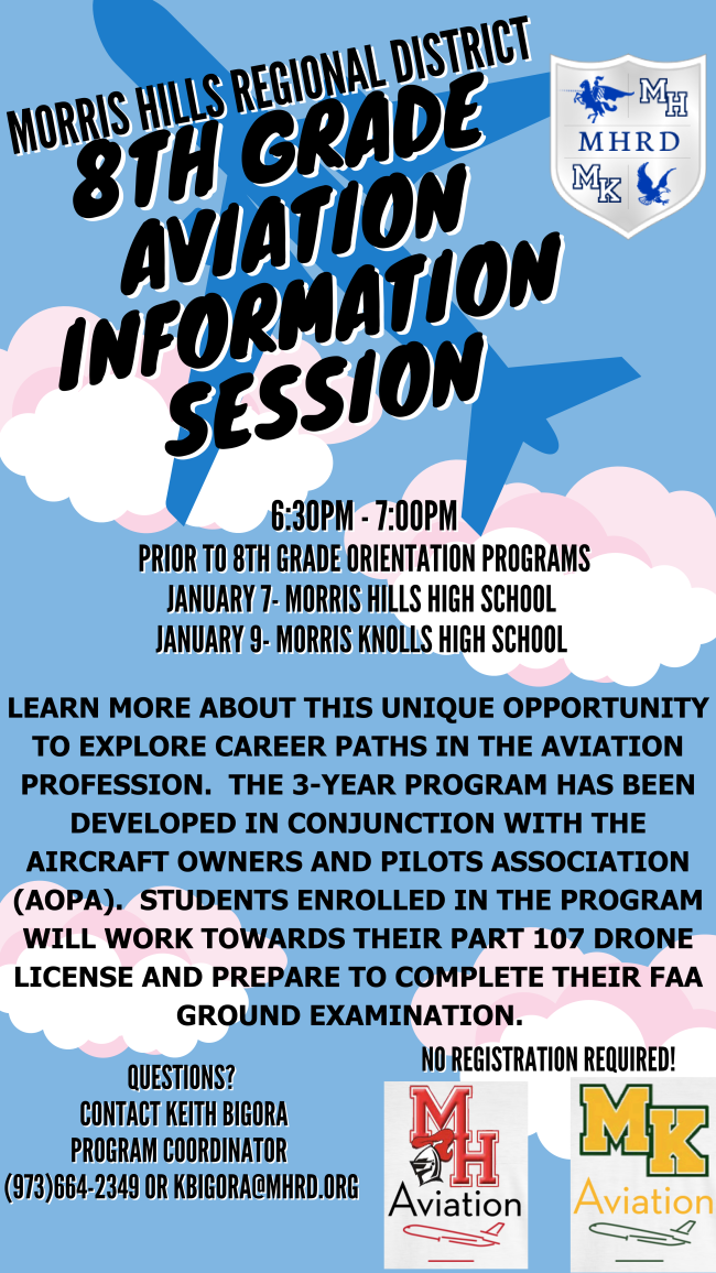 The Morris Hills Regional School District came in to present to our 8th grade students on two occasions. High School staff members came to detail course offerings and separately, 8th grade students experienced a Science, Technology, Engineering, and Math presentation in small groups. These were valuable experiences for our students!