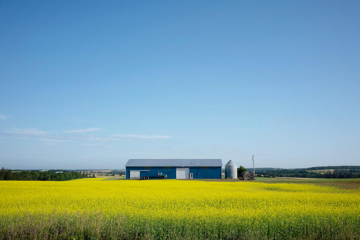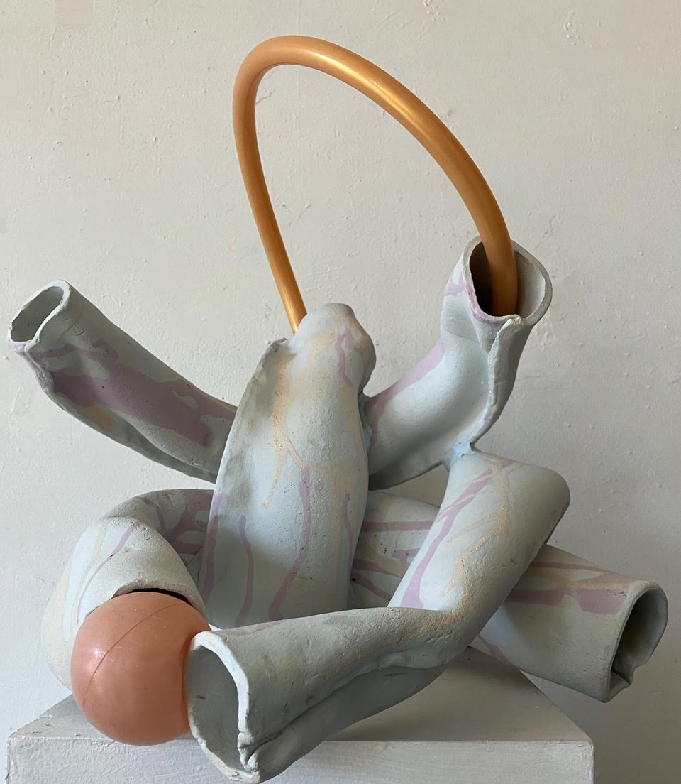 | Linda Leslie Brown, Circulations, 2024, ceramic andplastic 17” x 18” x 19” | Vaughn Sills, Field of Rapeseed with Blue Barn, BlueSky, 2019, Archival Pigment Print, 14 x 20” | |