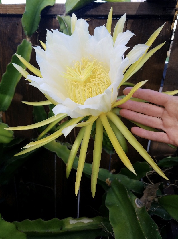 This is my daughter's dragon fruit flowers and the fruit they produce.
