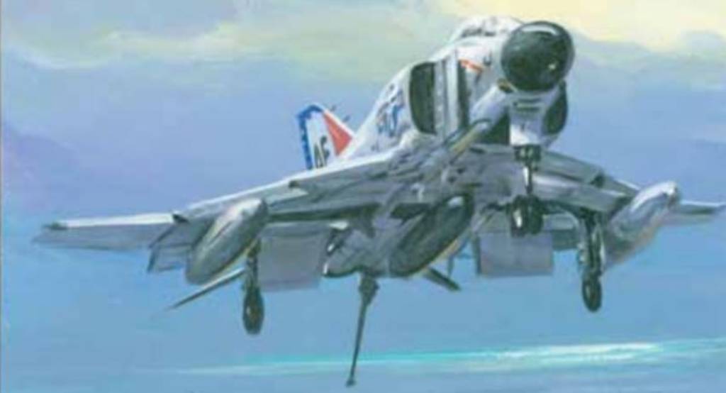 An F-4J from VF-114 "Aardvarks" armed with AIM-7E Sparrow and AIM-9D Sidewinder missiles in flight during the squadron's 1972 deployment to Vietnam. The "Aardvarks" made nine deployments to Vietnam.