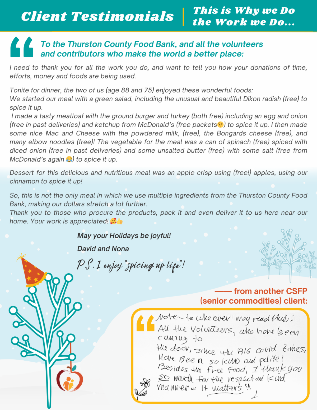 Thurston County Food Bank | PO Box 11549 | Olympia, WA 98508 US