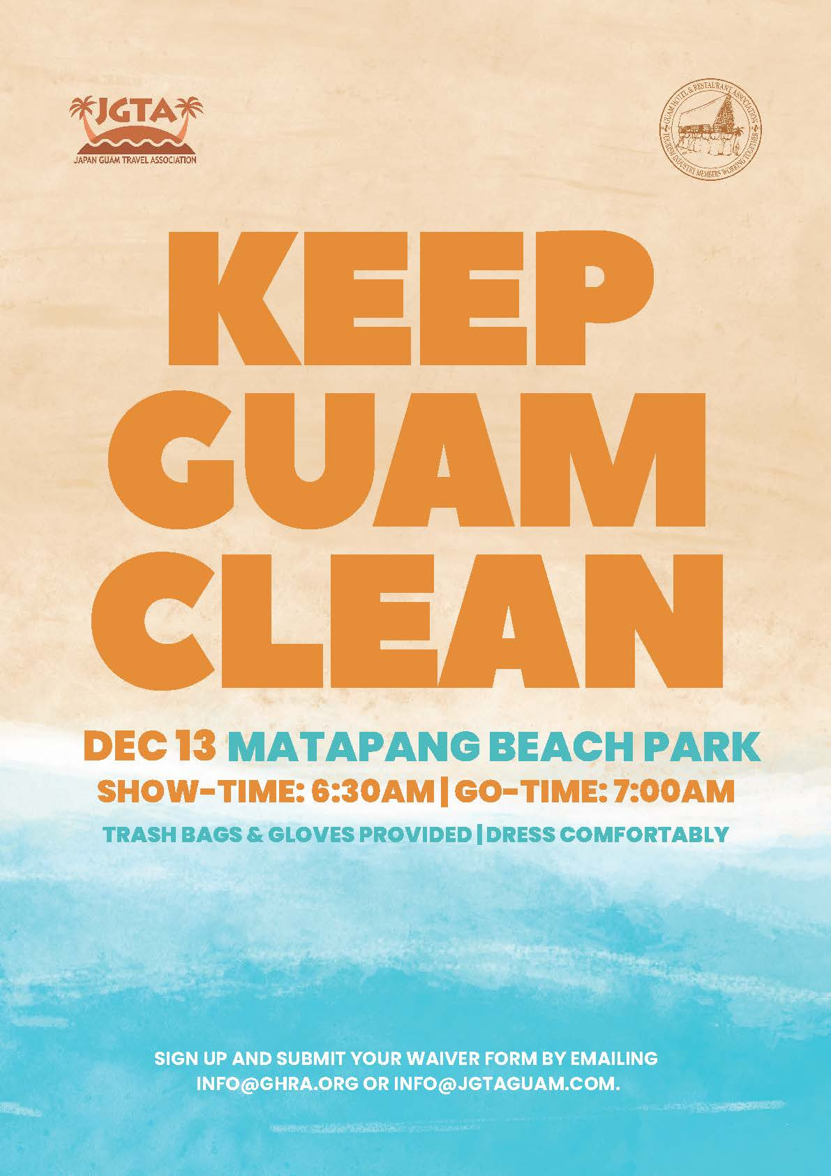 In efforts to keep our island and beaches clean, the Guam Hotel and Restaurant Association (GHRA) and the Japan Guam Travel Association (JGTA) will once again collaborate to organize the Keep Guam Clean! Beach Cleanup.
