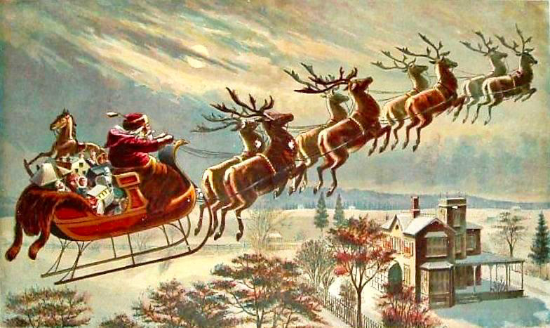 The next morning was Christmas, and my little brothers woke us all at dawn. My brothers' and my bedroom looked out over our front porch roof, which was covered with snow ... and something else; there were two parallel tracks across the roof as if they had come from a sleigh skidding across the snow.