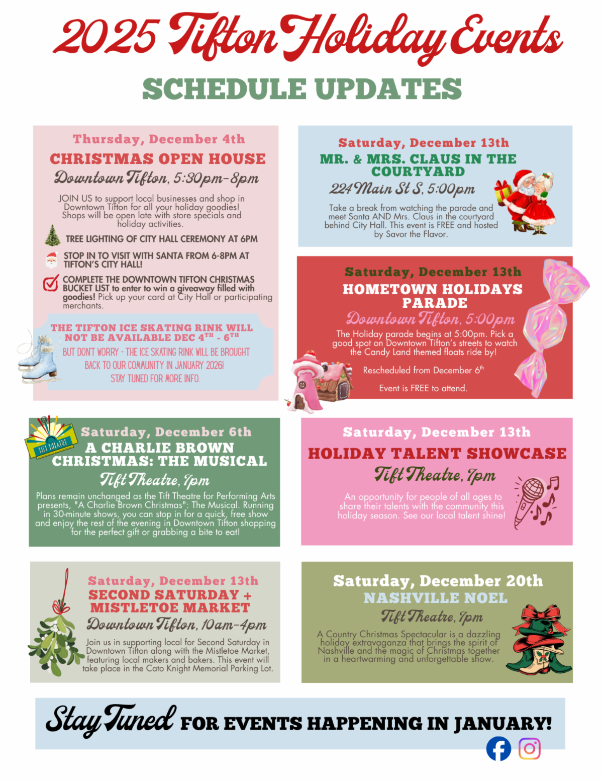 "Holiday cheer is still here in Tifton this year, despite the rainy weather, and we look forward to seeing everyone at our upcoming events and rescheduled parade Saturday, Dec. 13," the City of Tifton said in a press release.