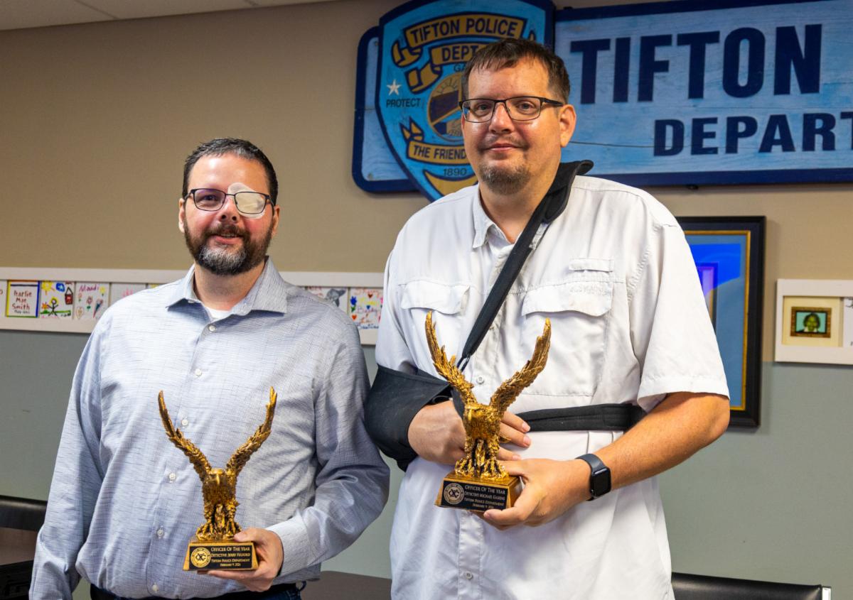 Tifton Police Detectives Jerry Fulford and Michael Gaskins were honored this week with Officer of the Year awards from the Exchange Club of Tifton.