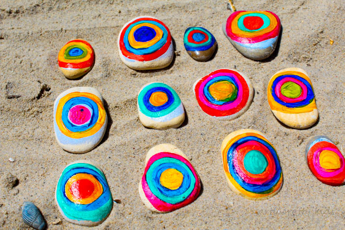 Kandinsky’s Squares with Concentric Circles is perhaps his most popular works. You might be surprised to learn that this piece was never a fully-fledged painting and was used by Kandinsky as a type of colour chart for his work. This simple Kandinsky Inspired Rock Art project is a fun way for children to explore color combinations, with an opportunity to use natural materials as their canvas.