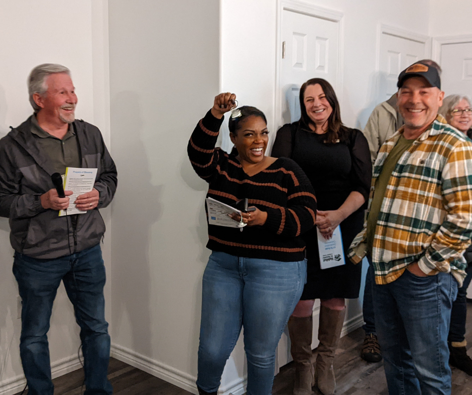 With over 50 people in attendance, including fellow Habitat homeowners, numerous volunteers, and Mayor Gerard Hudspeth, the Johnsons were enthusiastically welcomed into their new home. All in attendance enjoyed cupcakes donated by Candy Haven and coffee donated by Zera Coffee, as we celebrated this amazing day in the life of the Johnson family!