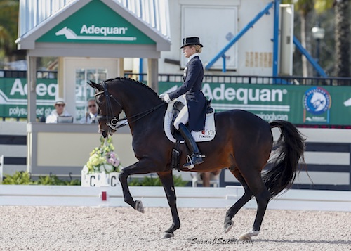Wellington, FL -- January 10, 2015 -- Tinne Vilhelmson-Silfven (SWE) and Divertimento, a 13-year-old Westphalian gelding owned by L�vsta Stuteri, received a 72.980% to take home the top prize in the Adequan�  Global Dressage Festival's (AGDF) FEI Grand Prix Special, presented by MTICA Farms. Allison Brock (USA) and Rosevelt followed in second with a 71.706% and Lisa Wilcox (USA) riding Pikko del Cerro HU finished third scoring a 71.275%.